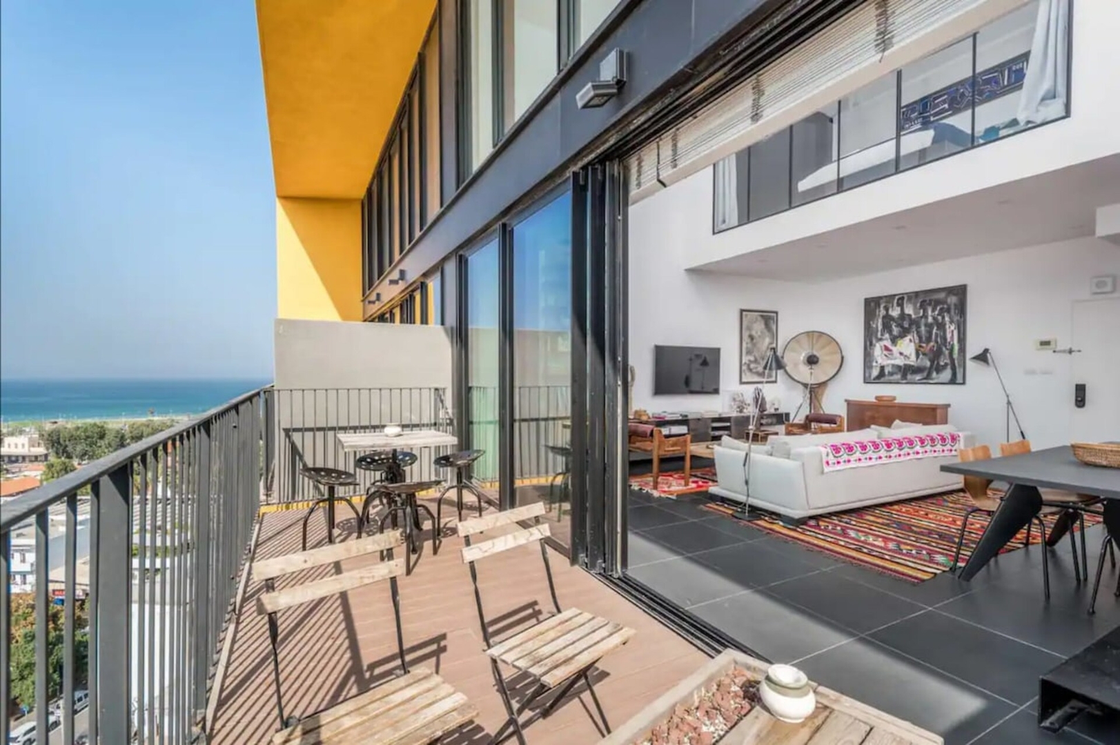 This luxury duplex is one of Tel Aviv's nicest spots! Located 200m from the beach and next to the magical neighbourhoods of Neve Tzedek and Jaffa in a recently completed state of the art project, this flat offers it all: - Amazing sea view from all rooms - Spacious sea front balcony - Private parking - Guarded entrance - Tons of Mediterranean light